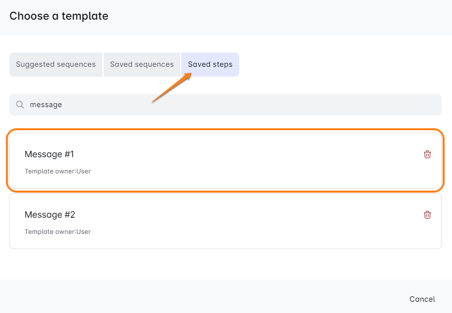 Zum Schritt navigieren: Scrollen Sie nach unten, um den Schritt zu finden, den Sie kopieren möchten. Es könnte sich um eine Einladung zur Verbindung, eine Nachricht, eine InMail oder eine E-Mail handeln.