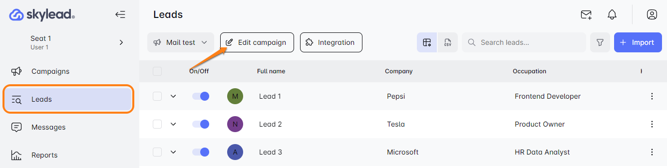 Und das war's! Das Bearbeiten Ihrer Kampagnen in Skylead ist so einfach.