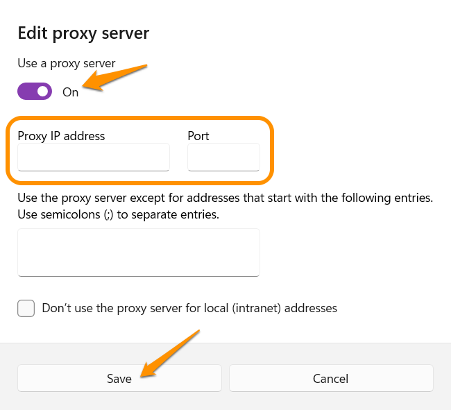 - Input the proxy info from our Customer Support team and hit "Save."