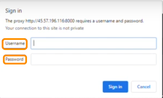 - Next, log in to your browser using the Username and Password that came with your proxy details.