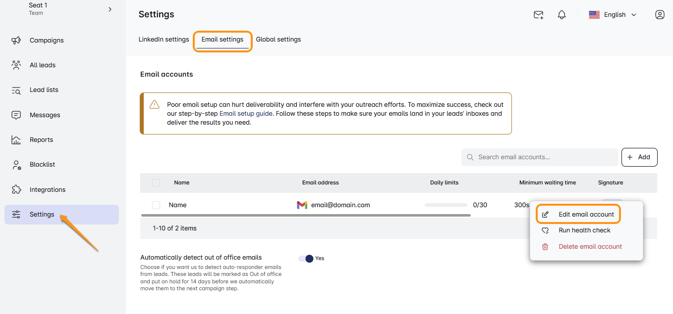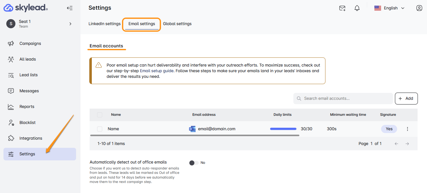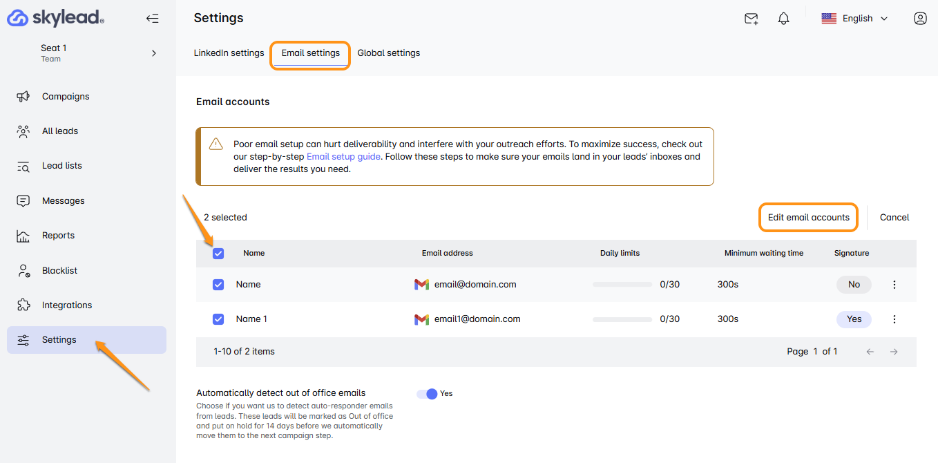Are you looking to fine-tune your email settings in Skylead? You're in the right place! Let’s walk through these steps together. 📧