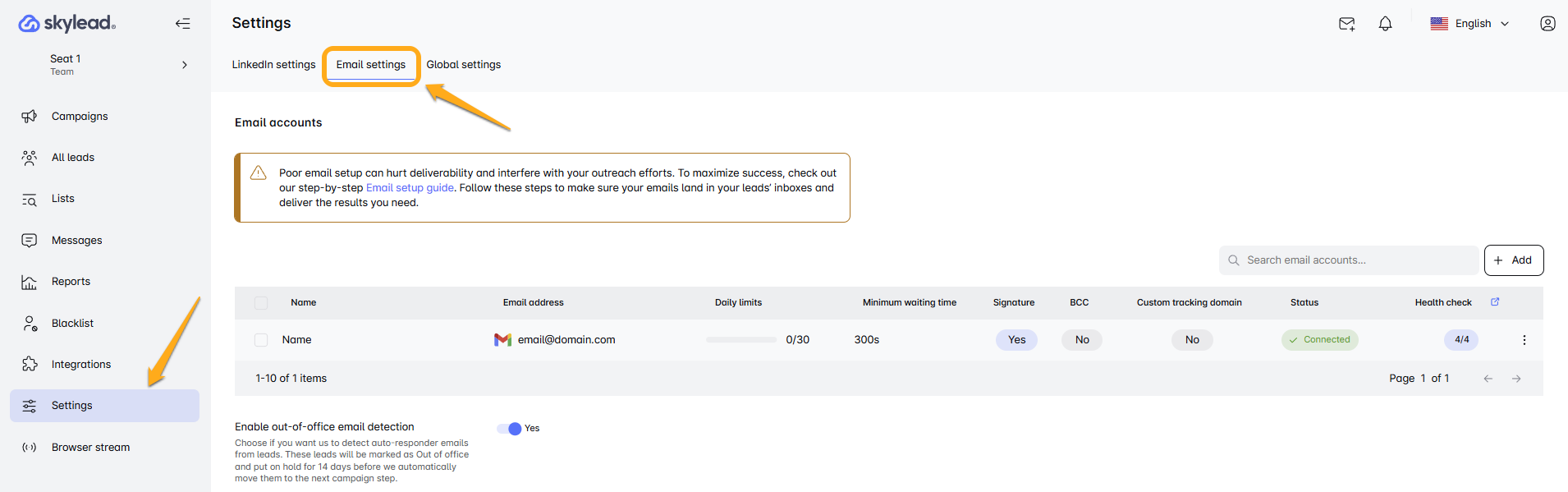 Now, it’s time to add & connect your emails to Skylead in just a few clicks. Here’s the step-by-step guide 👇