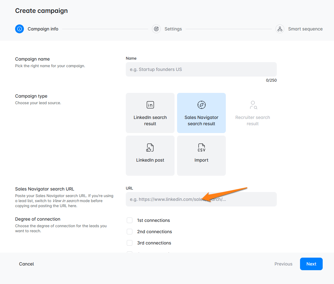 Now head over to your Skylead dashboard. Paste the link into the campaign creation flow, and you’re ready to roll with your new campaign. ✨