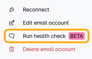 To run a check yourself, click the three dots next to the email and choose Run health check. We’ll verify everything and let you know if you’re good to go. Clean setup, clear status, and better deliverability — all in one place ✉️