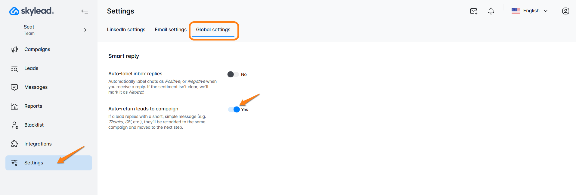 Enable Auto-return leads to campaign