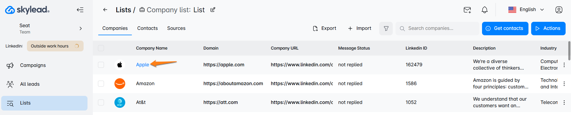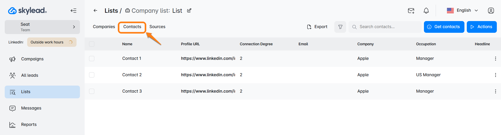Here’s where the magic happens🪄 Skylead will compare your contact search results with your company list, helping you find the most relevant people within those target accounts. 💡