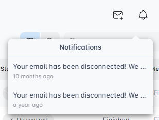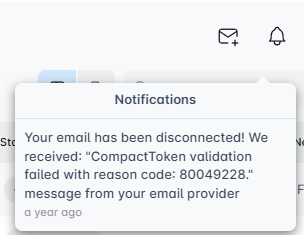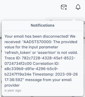 ¿Has notado que tu conexión de correo electrónico sigue cayendo? El ícono de la campana te informará por qué, ofreciendo detalles sobre el problema.