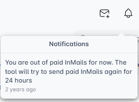 Cuando te quedes sin InMails Pagados, el ícono de la campana te notificará, ¡así siempre estarás al tanto!