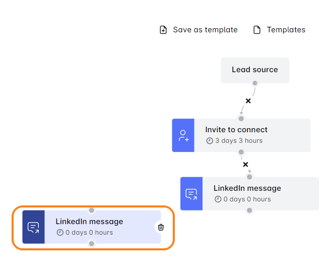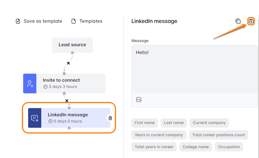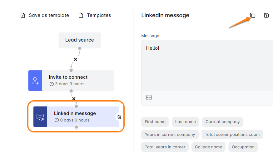 Naviguez vers l'étape : Faites défiler pour trouver l'étape que vous souhaitez copier. Cela peut être une Invitation à se connecter, un Message, un InMail ou un Email.