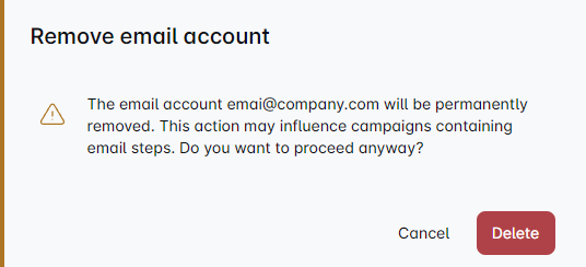 ❗ Note Importante : Juste un petit rappel—la suppression d'un compte email est une action permanente. Cela pourrait également affecter vos campagnes actives, alors réfléchissez bien ! ⚠️