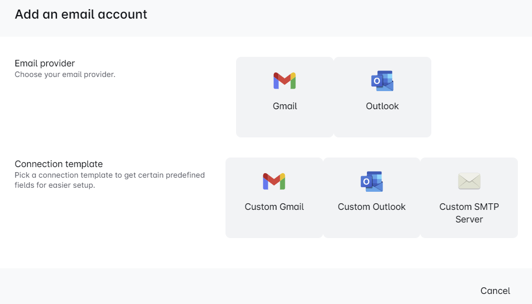 Vous pouvez désormais connecter de nouveaux fournisseurs d'e-mails et gérer tous vos canaux e-mail en un seul endroit. Que vous segmentiez vos communications ou lanciez des campagnes supplémentaires, notre plateforme facilite le choix du bon e-mail pour cette tâche. Sélectionnez votre fournisseur, suivez les instructions et connectez plusieurs e-mails pour profiter d'une stratégie plus puissante en protégeant votre réputation d'e-mail 🚀