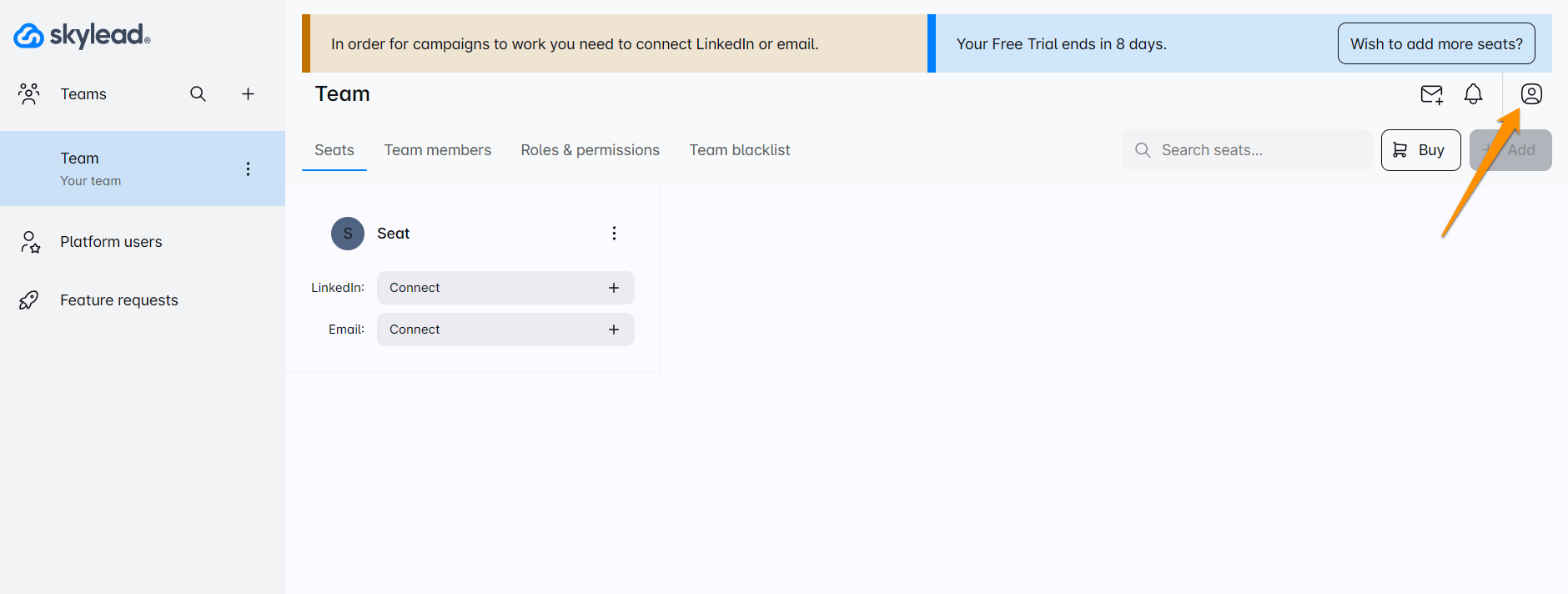 - Tout d'abord, cliquez sur l'icône de compte dans le coin supérieur droit de votre tableau de bord.