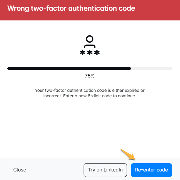 Incontri un errore di autenticazione a due fattori con Skylead? Questo accade se il codice 2FA scade o viene inserito in modo errato. Basta cliccare su Reinserisci codice nella notifica per riavviare il processo. Ricorda, il codice dura 1 minuto. Per qualsiasi aiuto extra. Buon viaggio! 🚀💙