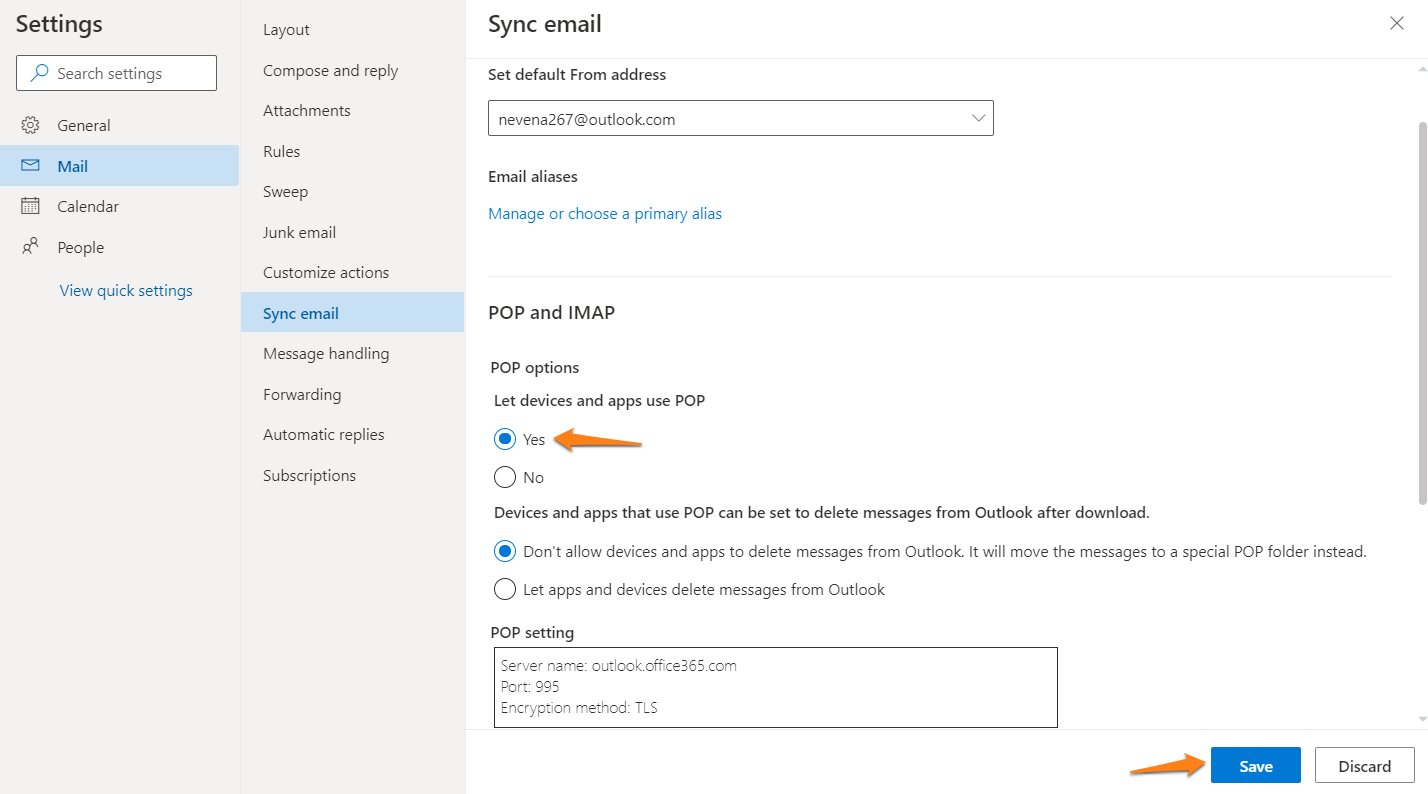 - Ga naar ‘E-mail synchroniseren’. Zorg ervoor dat de optie ‘Apparaten en apps POP laten gebruiken’ is ingeschakeld. Klik gewoon op ‘ja’ en je bent klaar!