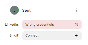 Encontrando um status de Credenciais incorretas? Isso geralmente significa que seu e-mail ou senha não correspondem aos nossos registros. Clique no botão vermelho, reintroduza cuidadosamente seus dados e envie. Se isso acontecer durante a integração, atualize a entrada de suas credenciais. Para ajuda extra, o suporte da Skylead está aqui. Aqui está para um acesso sem problemas! 🌐✨