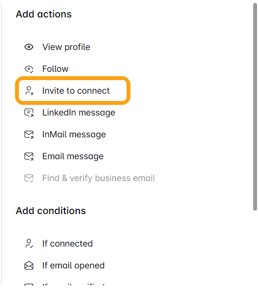 - Esta ferramenta prática permite que você convide leads do LinkedIn para se juntar à sua rede. Você pode se conectar com suas conexões de 2º e 3º grau, mas não com aquelas fora da sua rede. Melhor prática? Mantenha-se enviando convites para seus contatos de 2º grau para manter sua conta do LinkedIn segura e protegida!